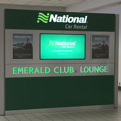 National Car Rental Emerald Club courtesy lounge deployed to five airpots over several months and then shipped to a new location for continued use