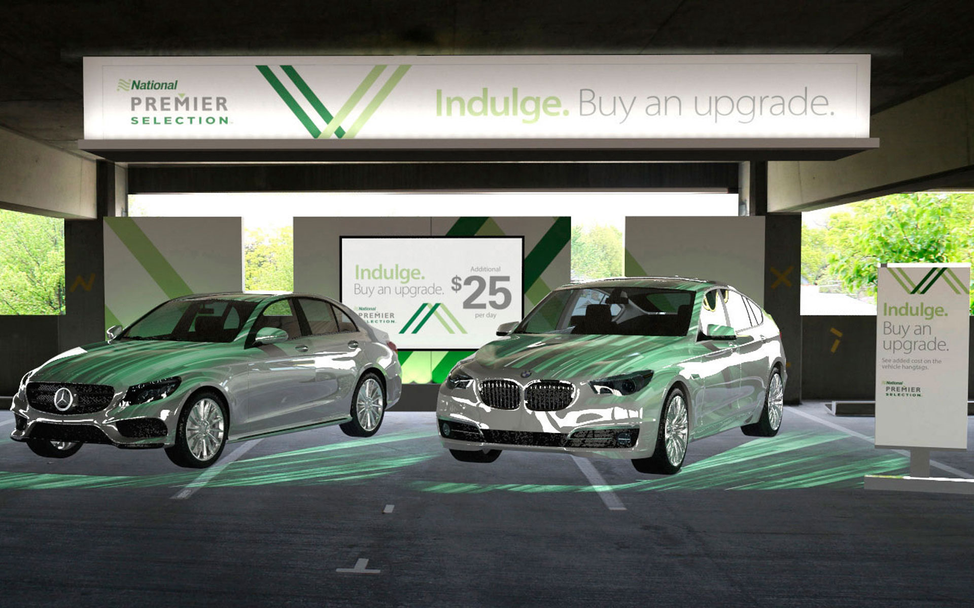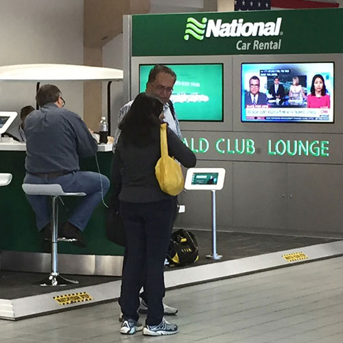 Create a courtesy lounge that allows travelers the opportunity to relax, re-charge, and do work while building brand awareness and provide customers with the takeaway that National gives them control in their travel experience